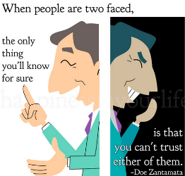 It's too late to cry about it, and he only loves her when shes there and when she's not there he loves another girl, also two-faced means that she knows his face has been kissing another girl.